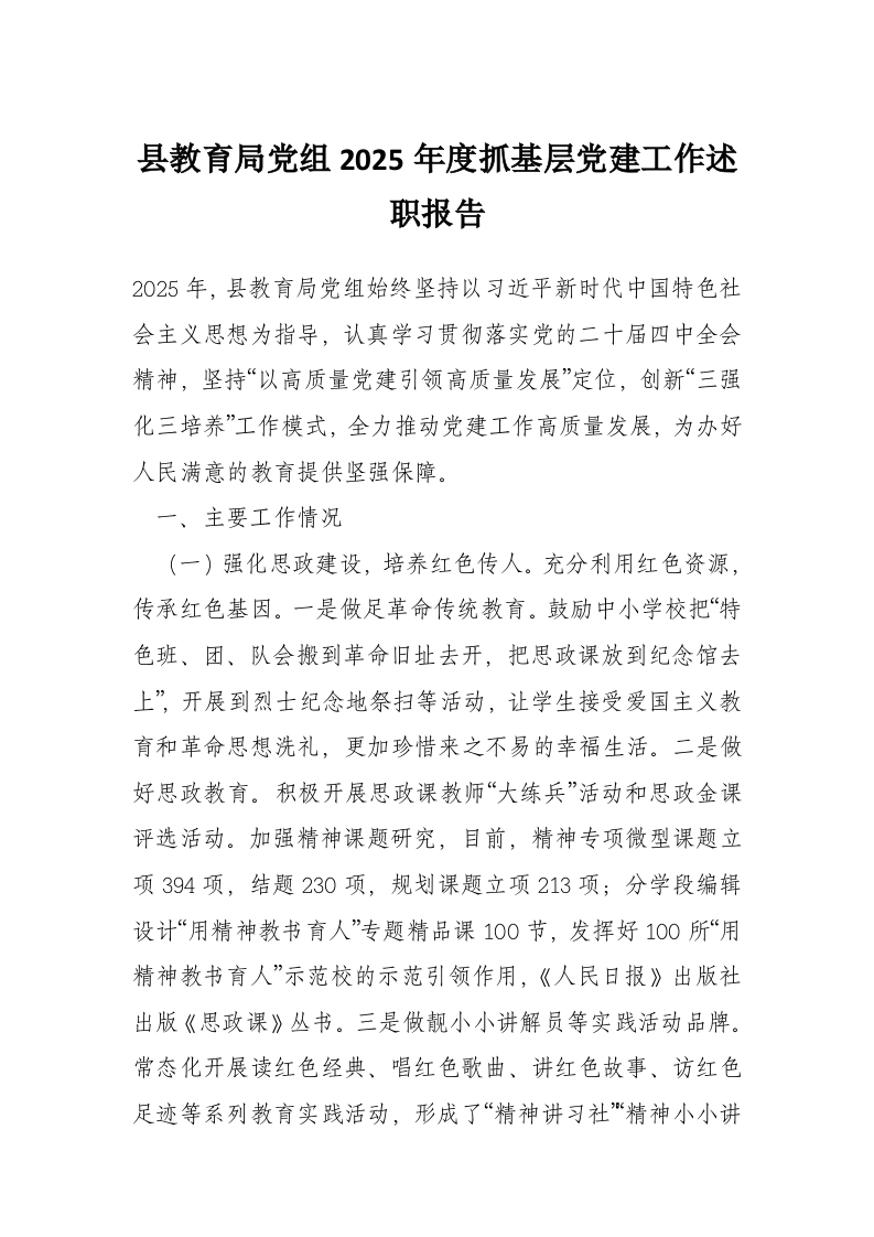首页写作素材县教育局党组2025年度抓基层党建工作述职报告