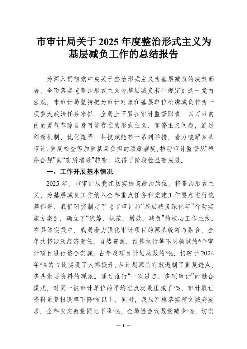 首页精选范文市审计局关于2025年度整治形式主义为基层减负工作的总结报告