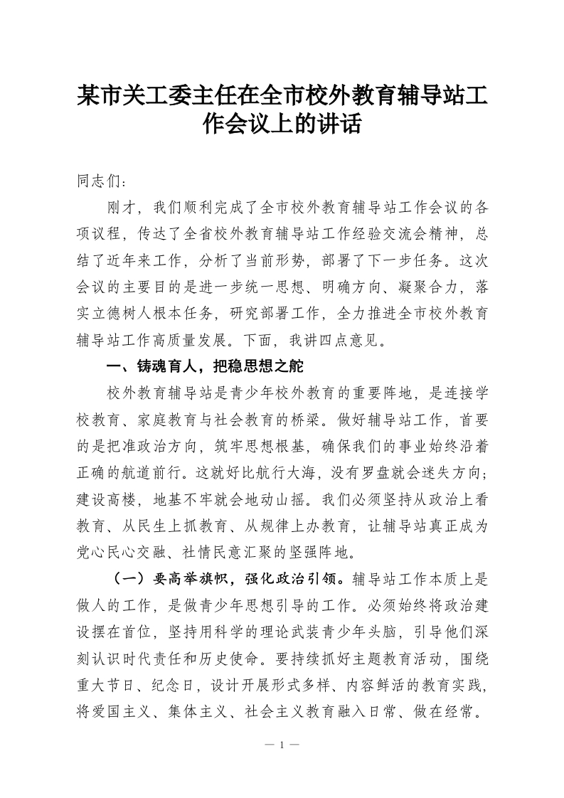 首页精选范文某市关工委主任在全市校外教育辅导站工作会议上的讲话