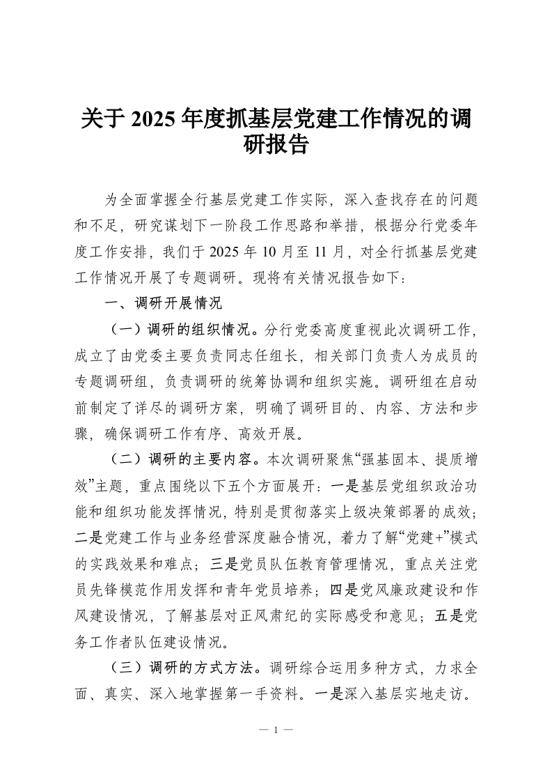 首页学习提升关于2025年度抓基层党建工作情况的调研报告
