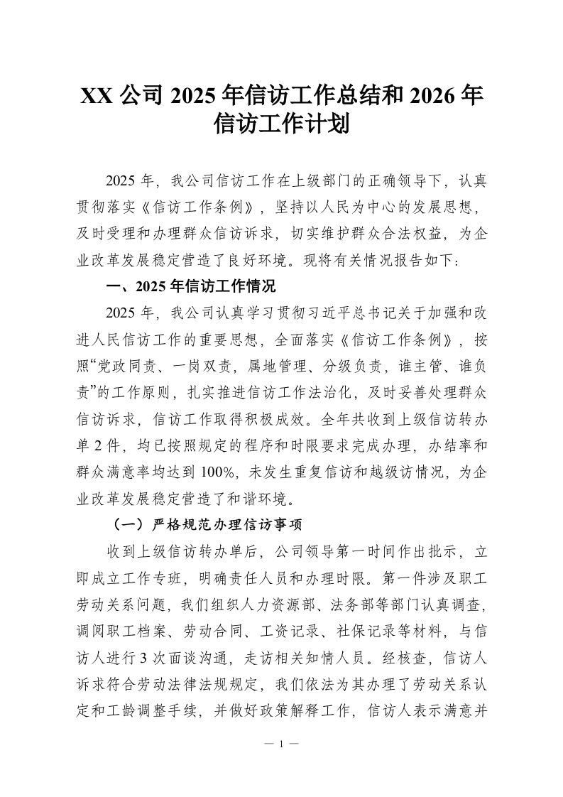 首页材料汇编XX公司2025年信访工作总结和2026年信访工作计划