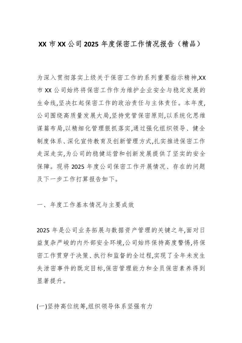 XX市XX公司2025年度保密工作情况报告(精品)_副本