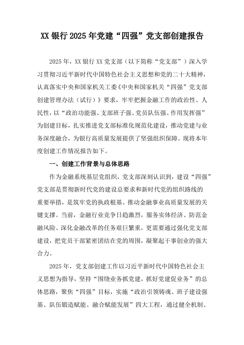 XX银行2025年党建“四强”党支部创建报告