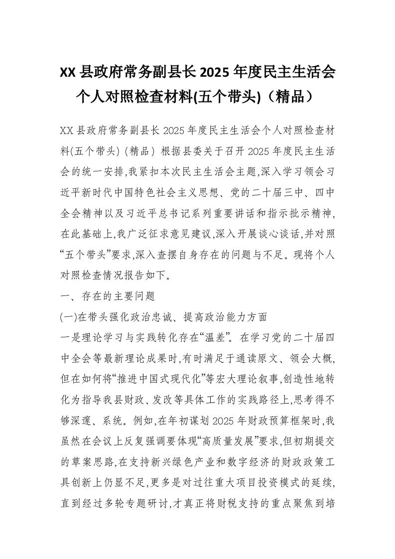首页写作素材XX县***常务副县长2025年度民主生活会个人对照检查材料(五个带头)(精品)