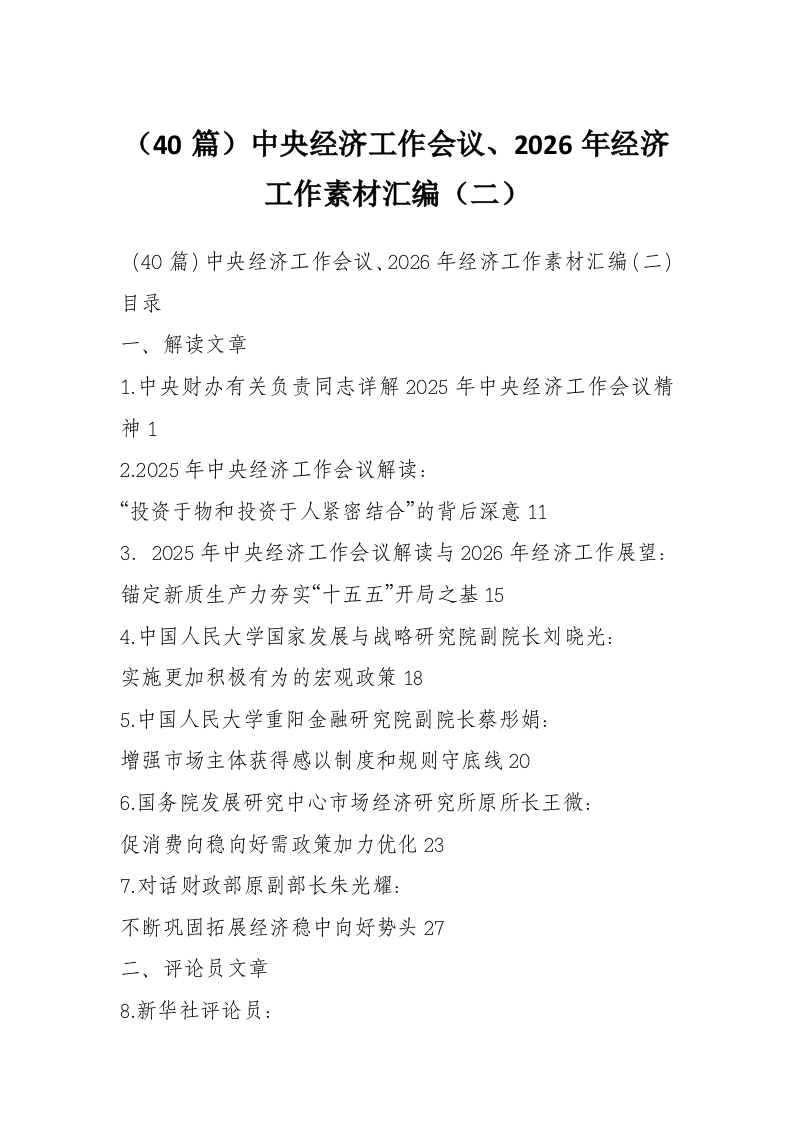 (40篇)中央经济工作会议、2026年经济工作素材汇编(二)