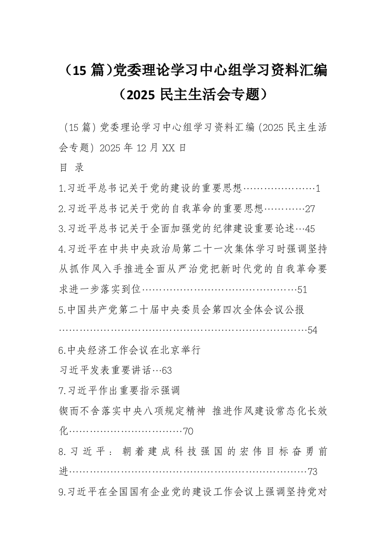 (15篇)党委理论学习中心组学习资料汇编(2025民主生活会专题)