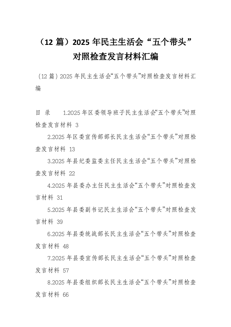 (12篇)2025年民主生活会“五个带头”对照检查发言材料汇编