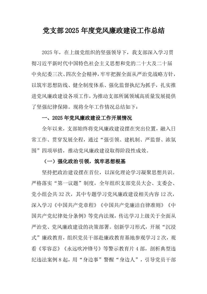 首页工作文档党支部2025年度党风廉政建设工作总结
