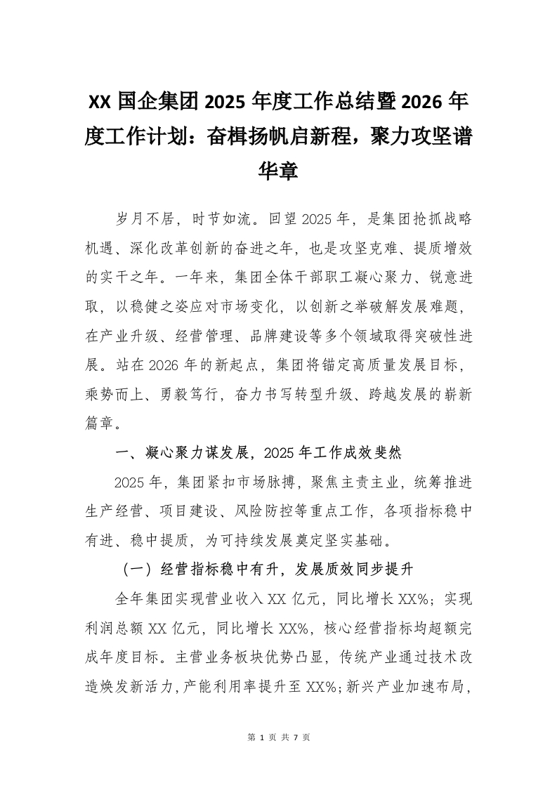XX国企集团2025年度工作总结暨2026年度工作计划:奋楫扬帆启新程,聚力攻坚谱华章