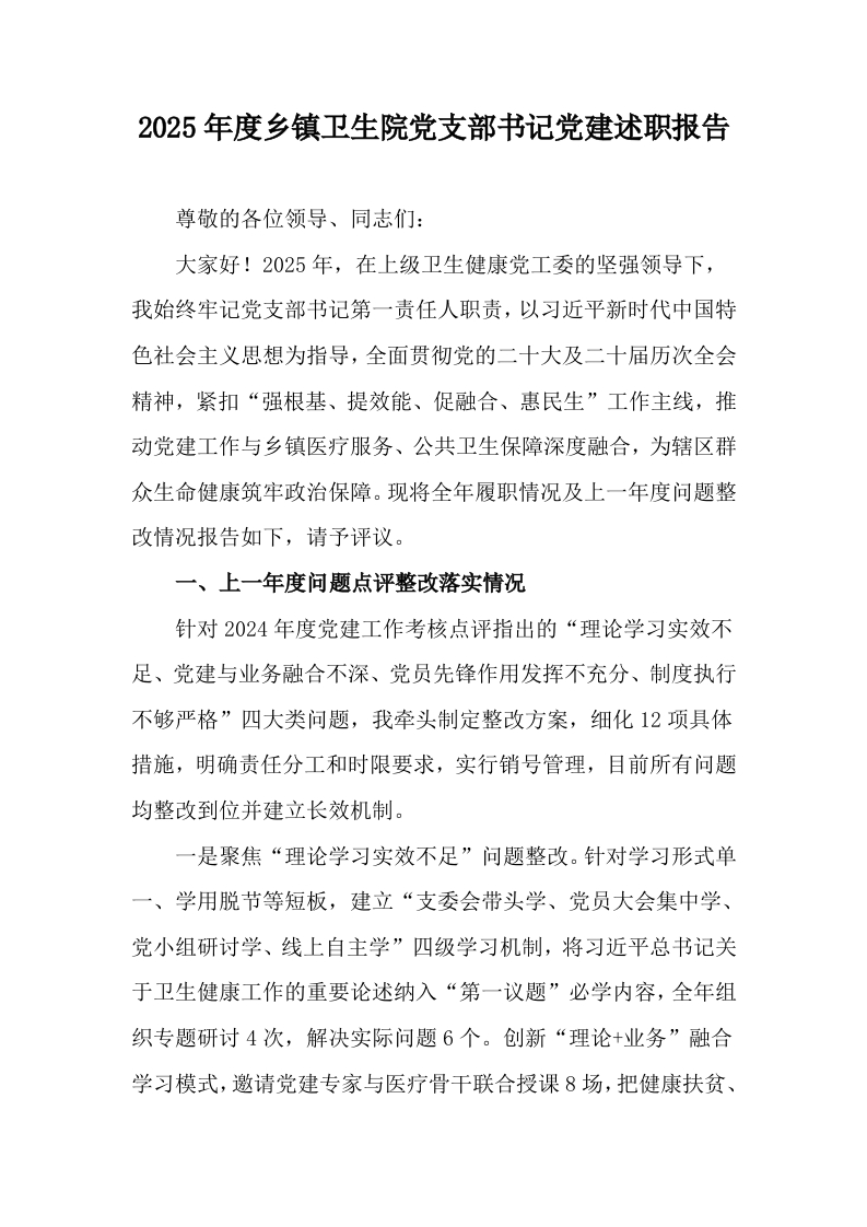 2025年度乡镇卫生院党支部书记党建述职报告_副本