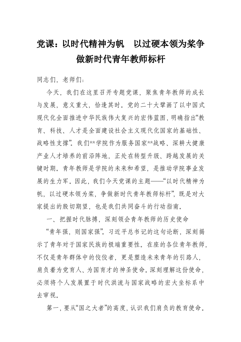 党课:以时代精神为帆 以过硬本领为桨争做新时代青年教师标杆