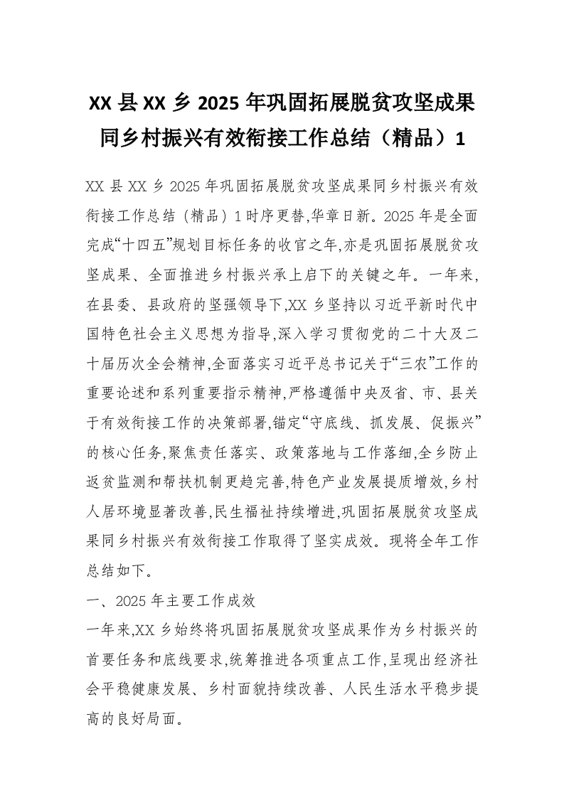 XX县XX乡2025年巩固拓展脱贫攻坚成果同乡村振兴有效衔接工作总结(精品)1