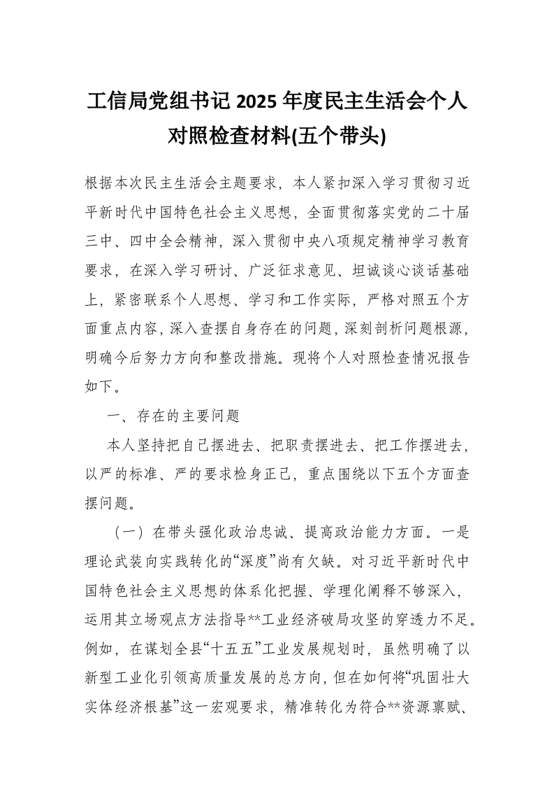 首页材料汇编工信局党组书记2025年度民主生活会个人对照检查材料(五个带头)