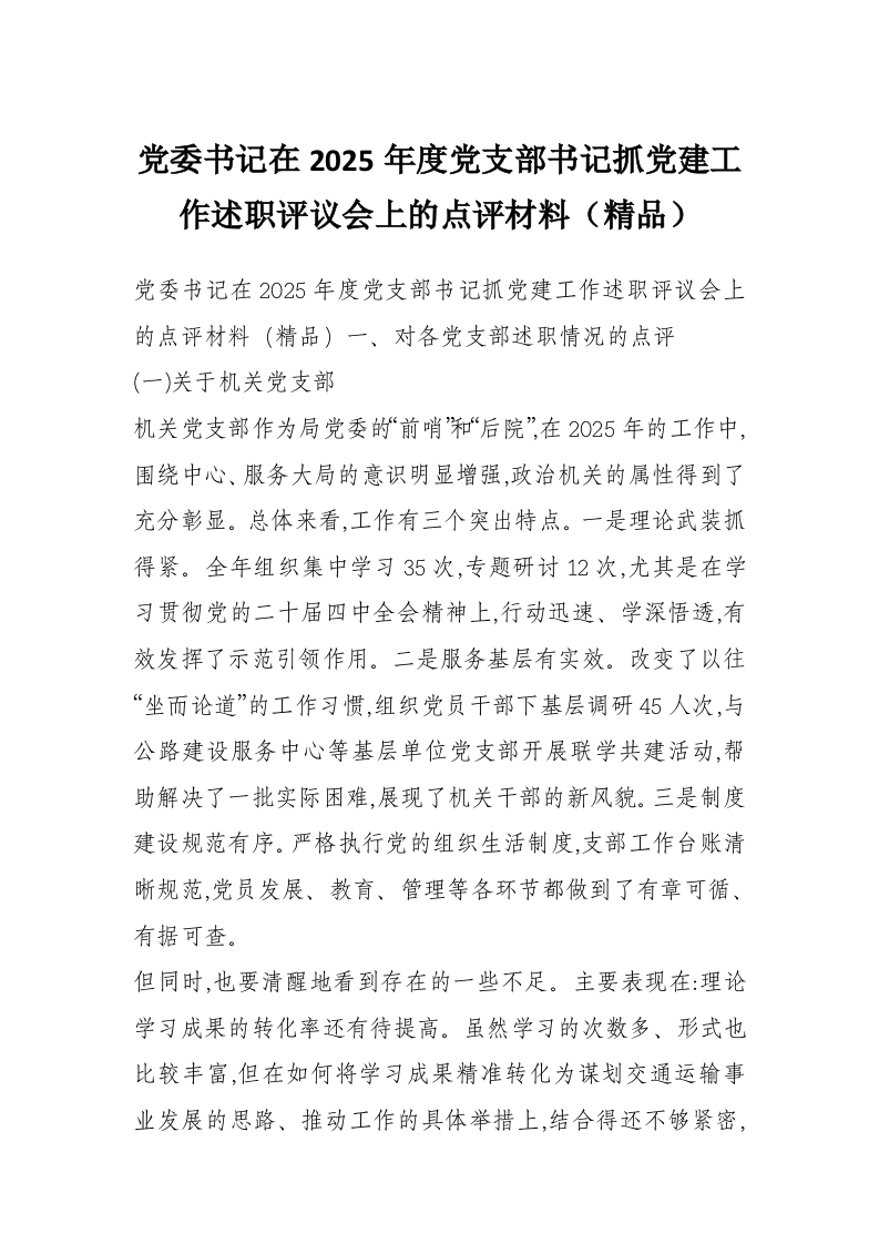 党委书记在2025年度党支部书记抓党建工作述职评议会上的点评材料(精品)