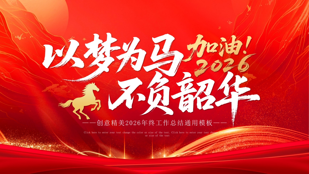 红色精美以梦为马不负韶华PPT2026马年企业公司个人年终工作总结模板