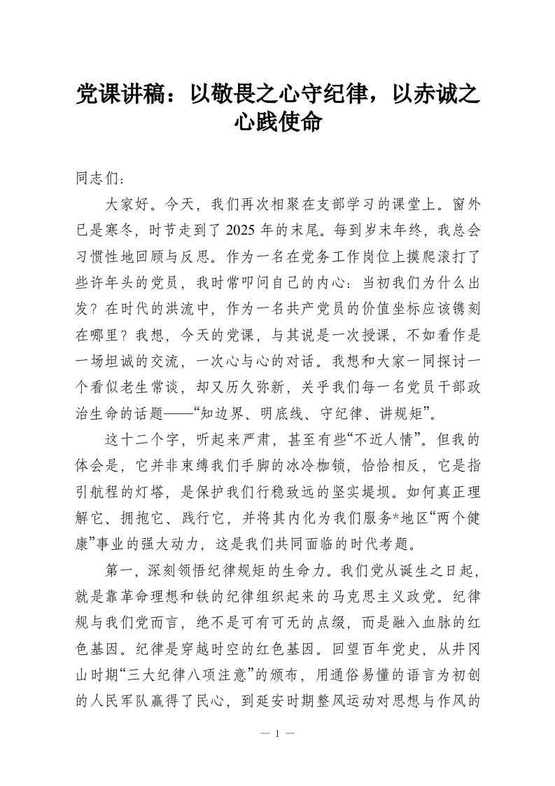 党课讲稿:以敬畏之心守纪律,以赤诚之心践使命