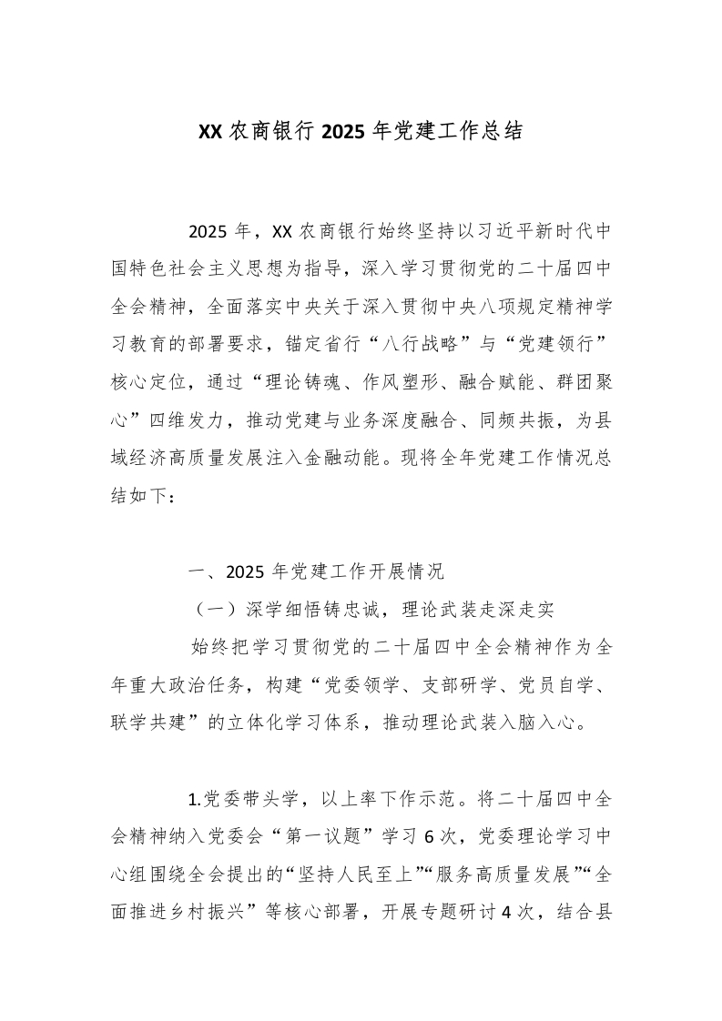 首页精选范文XX农商银行2025年党建工作总结_副本