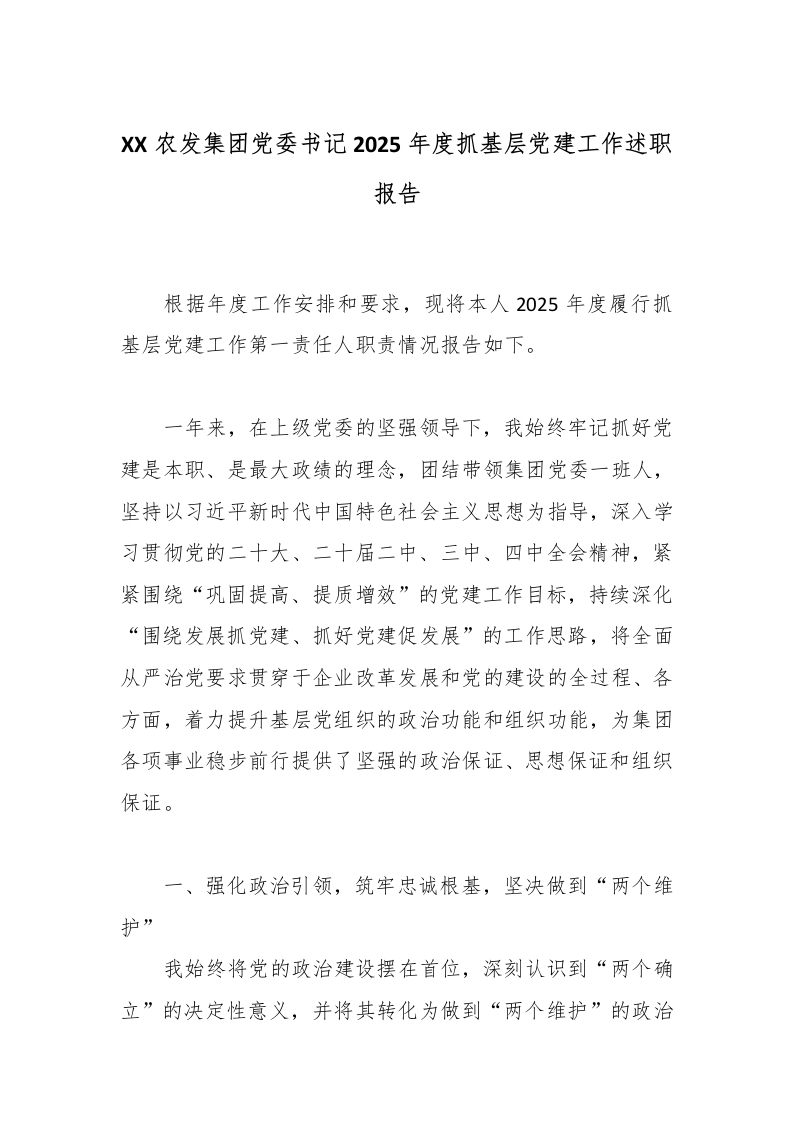 XX农发集团党委书记2025年度抓基层党建工作述职报告_副本