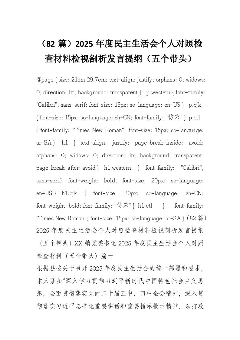 (82篇)2025年度民主生活会个人对照检查材料检视剖析发言提纲(五个带头)