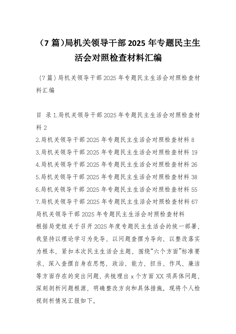 (7篇)局机关领导干部2025年专题民主生活会对照检查材料汇编