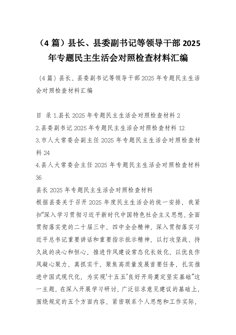 (4篇)县长、县委副书记等领导干部2025年专题民主生活会对照检查材料汇编