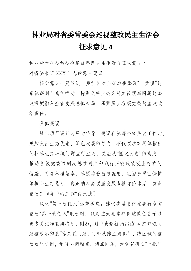 首页工作文档林业局对省委常委会巡视整改民主生活会征求意见4