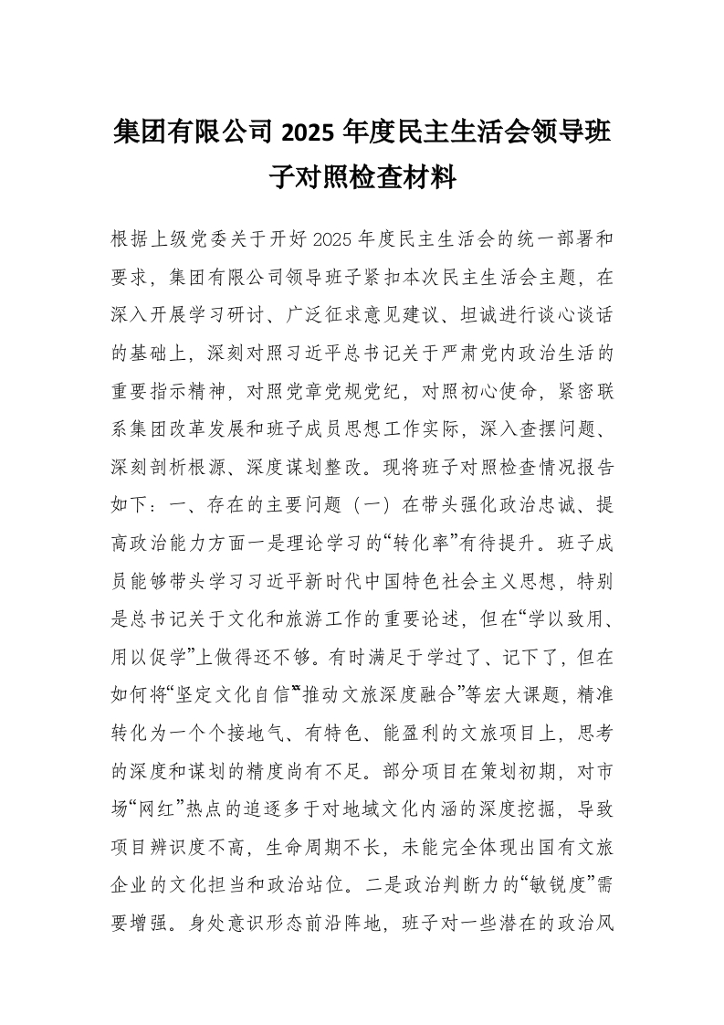 首页工作文档集团有限公司2025年度民主生活会领导班子对照检查材料