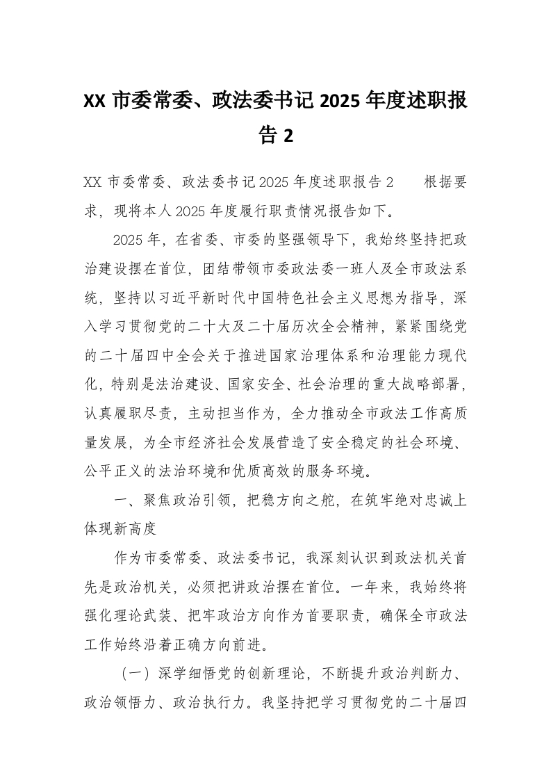 首页学习提升XX市委常委、政法委书记2025年度述职报告2
