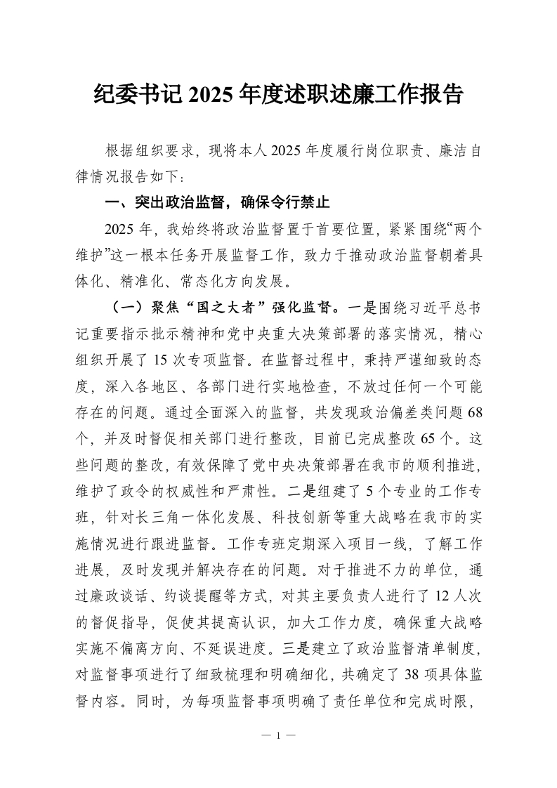 纪委书记2025年度述职述廉工作报告_副本