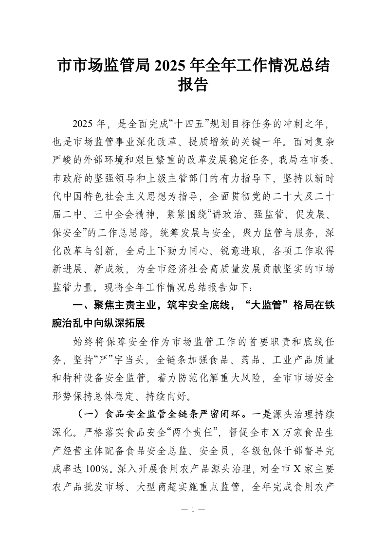 首页工作文档市市场监管局2025年全年工作情况总结报告_副本