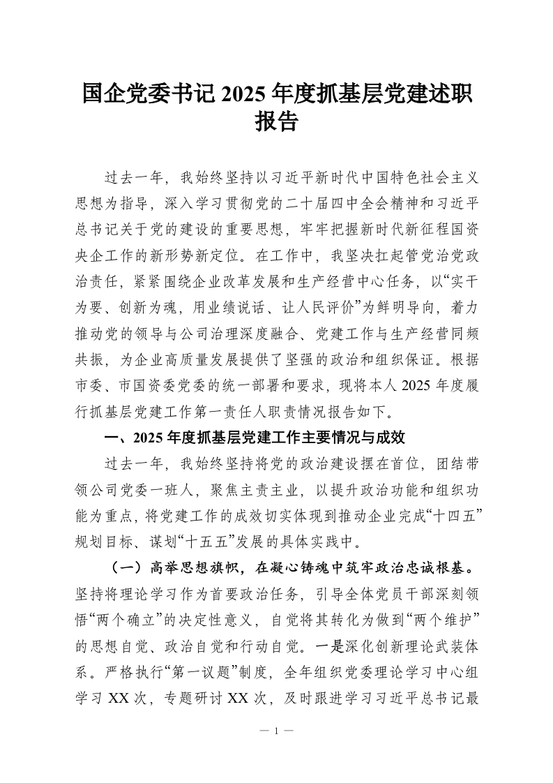 国企党委书记2025年度抓基层党建述职报告_副本