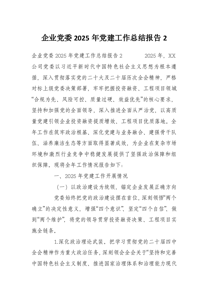 首页精选范文企业党委2025年党建工作总结报告2