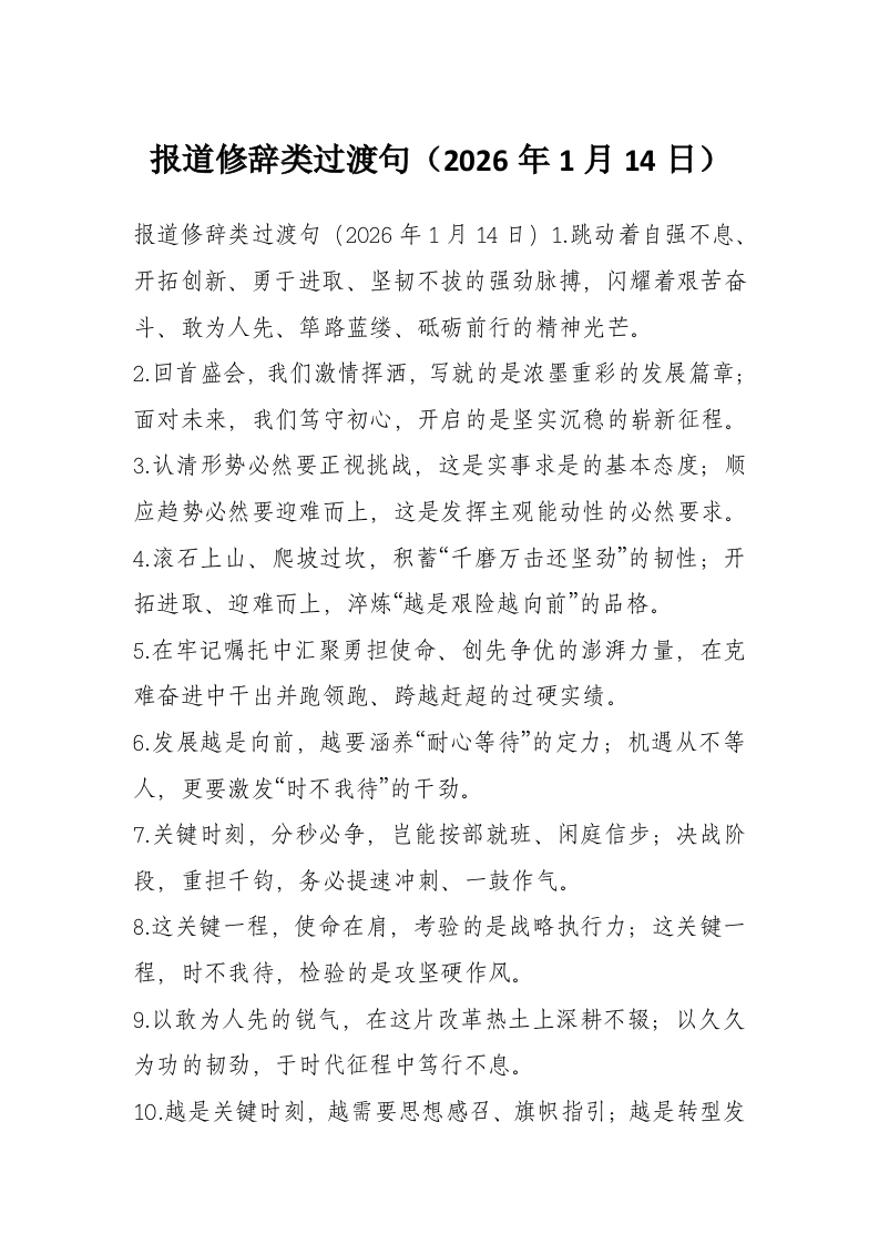 报道修辞类过渡句(2026年1月14日)
