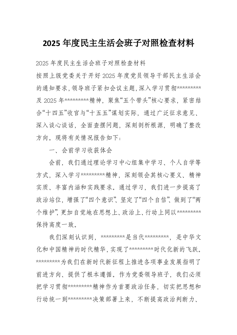 2025年度民主生活会班子对照检查材料