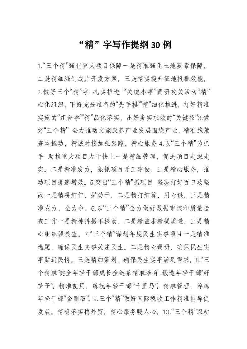 “精”字写作提纲30例