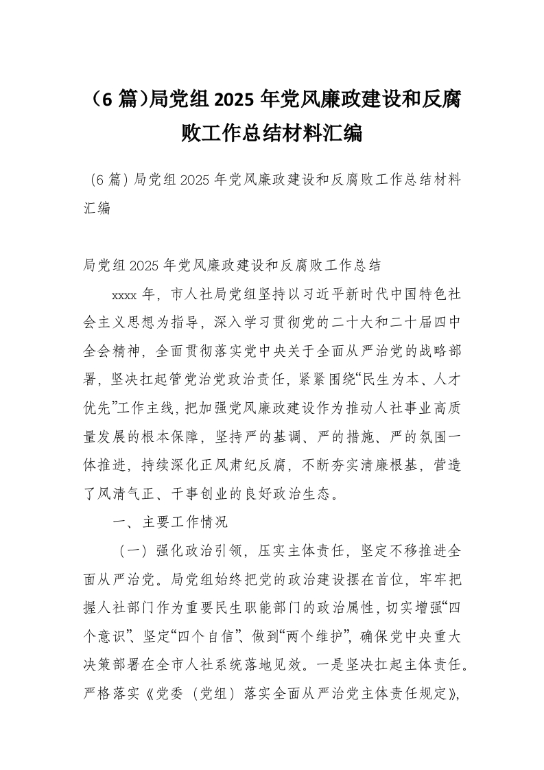 (6篇)局党组2025年党风廉政建设和反腐败工作总结材料汇编
