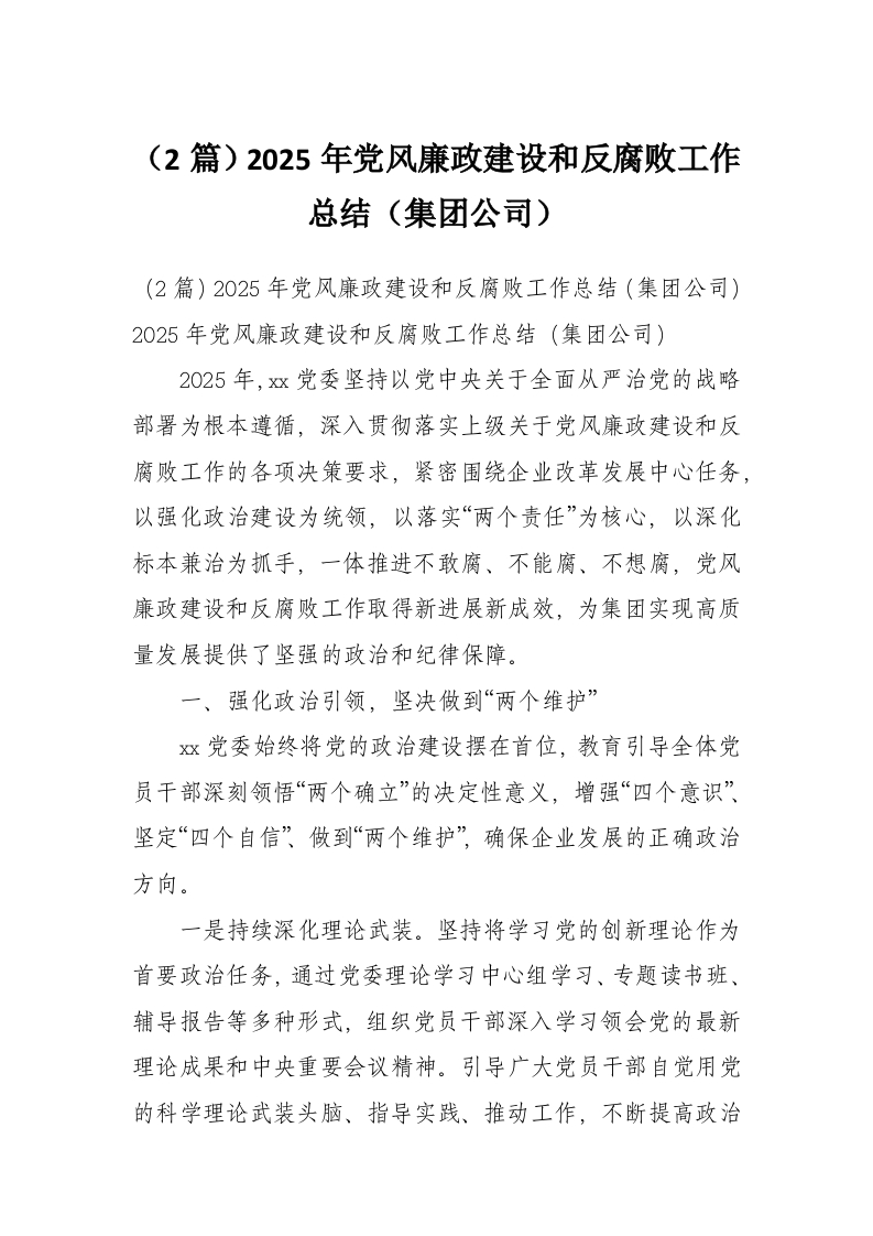 (2篇)2025年党风廉政建设和反腐败工作总结(集团公司)