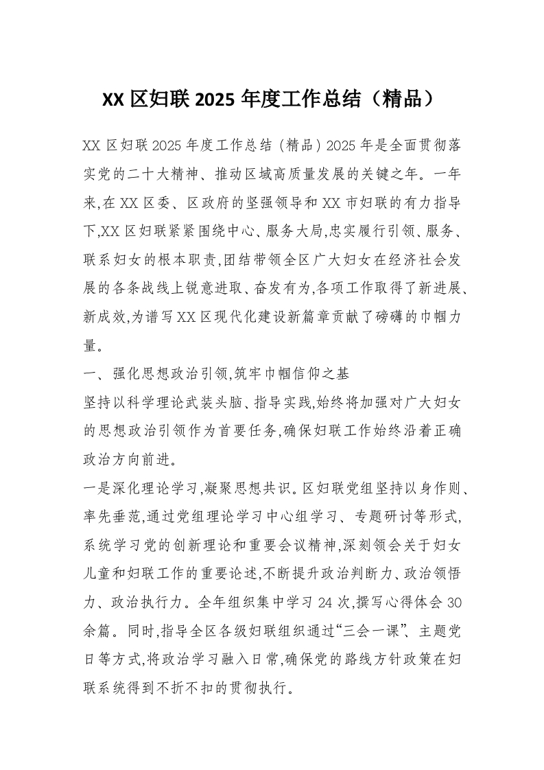 首页写作素材XX区妇联2025年度工作总结(精品)