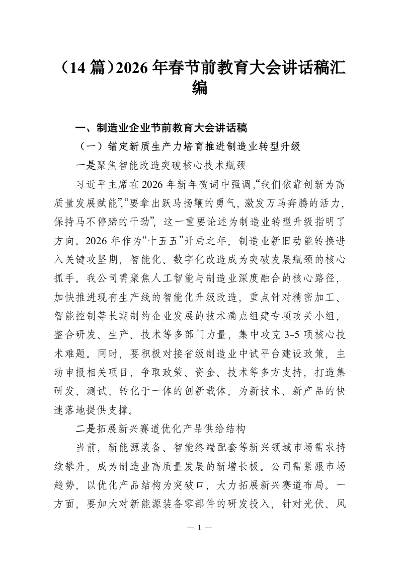 (14篇)2026 年春节前教育大会讲话稿汇编