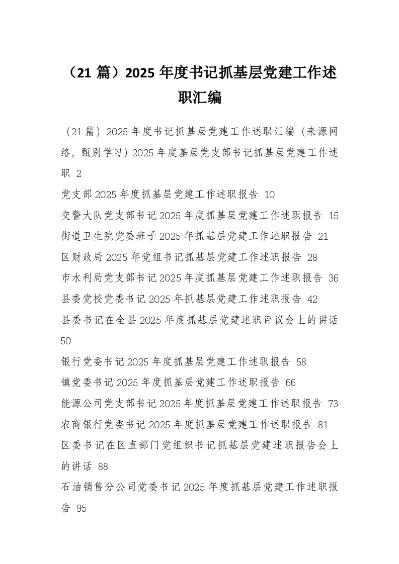首页材料汇编(21篇)2025年度书记抓基层党建工作述职汇编