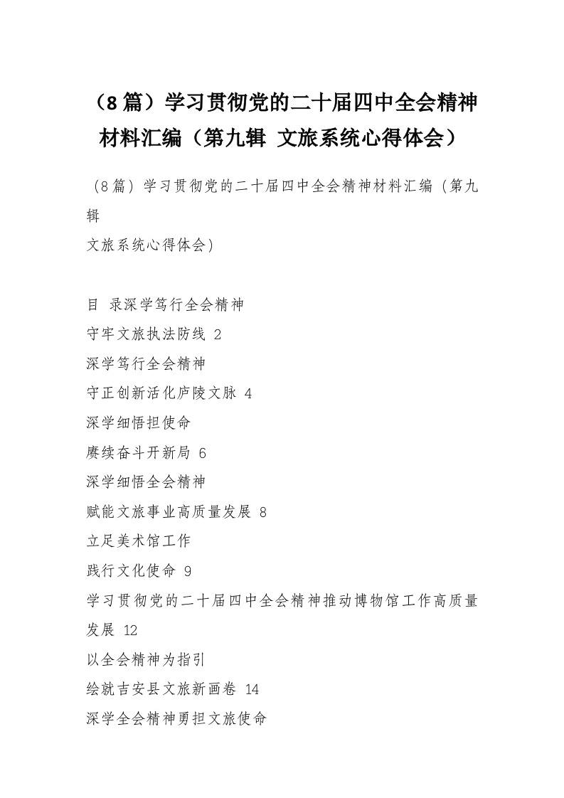 (8篇)学习贯彻党的二十届四中***精神材料汇编(第九辑 文旅系统心得体会)