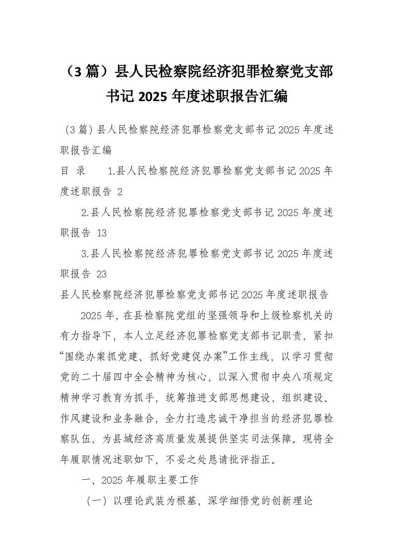 首页材料汇编(3篇)县人民检察院经济犯罪检察党支部书记2025年度述职报告汇编