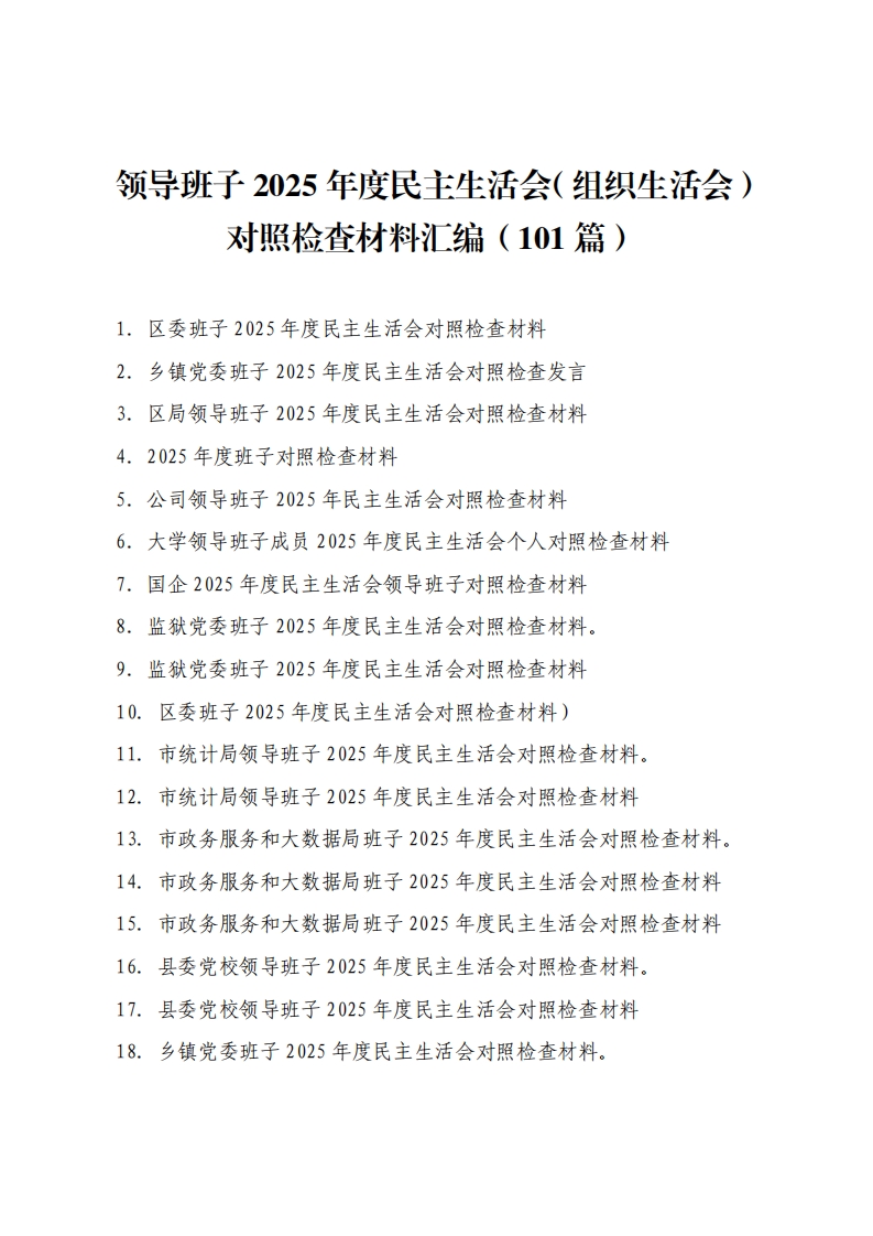 首页写作素材(101篇)领导班子2025年度民主生活会(组织生活会)对照检查材料汇编