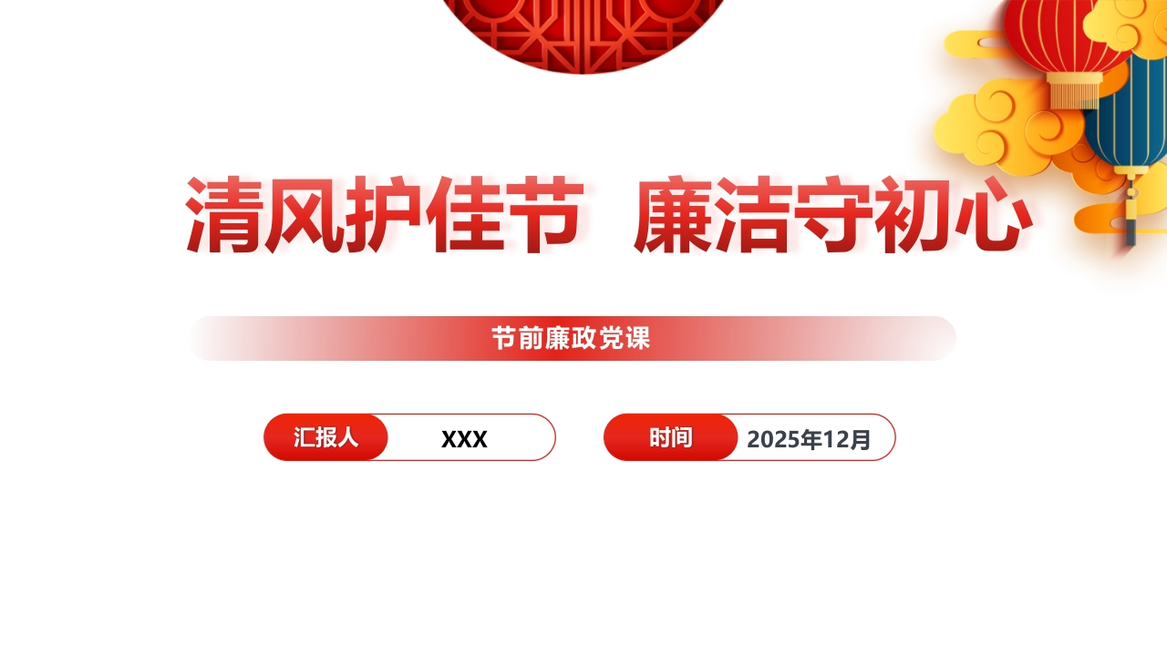 首页PPT模板PPT:清风护佳节,廉洁守初心——2026年元旦、春节前党员干部廉政党课