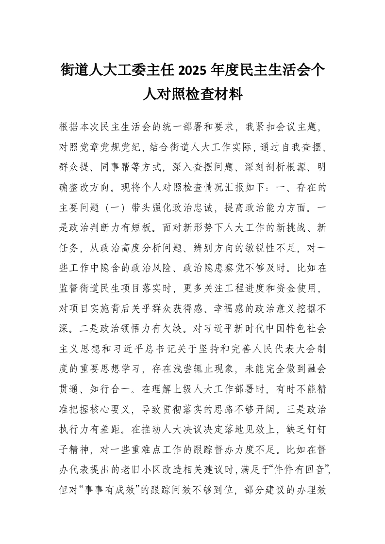 首页学习提升街道人大工委主任2025年度民主生活会个人对照检查材料