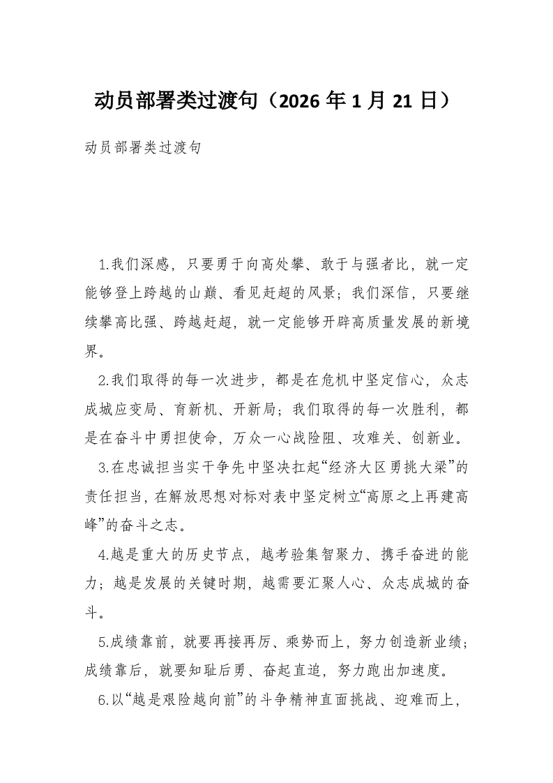 动员部署类过渡句(2026年1月21日)