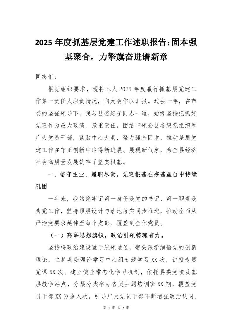 2025年度抓基层党建工作述职报告:固本强基聚合,力擎旗奋进谱新章