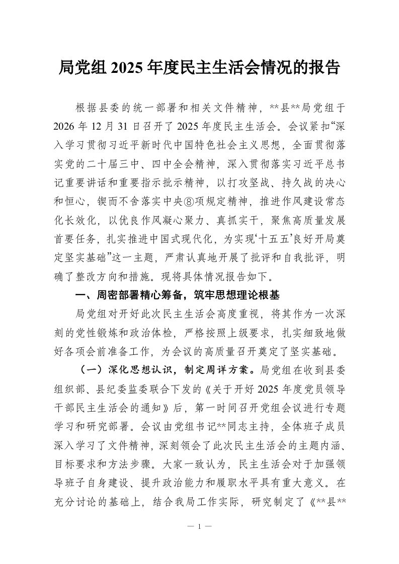 首页工作文档局党组2025年度民主生活会情况的报告_副本