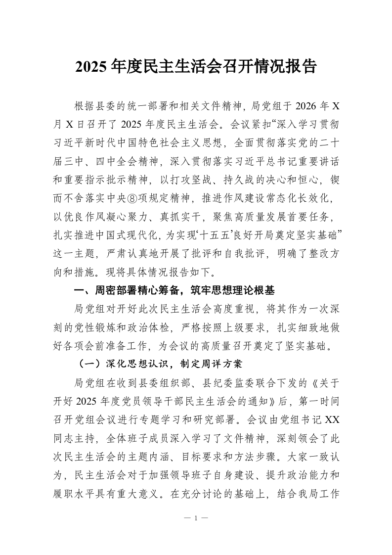 首页工作文档2025年度民主生活会召开情况报告_副本