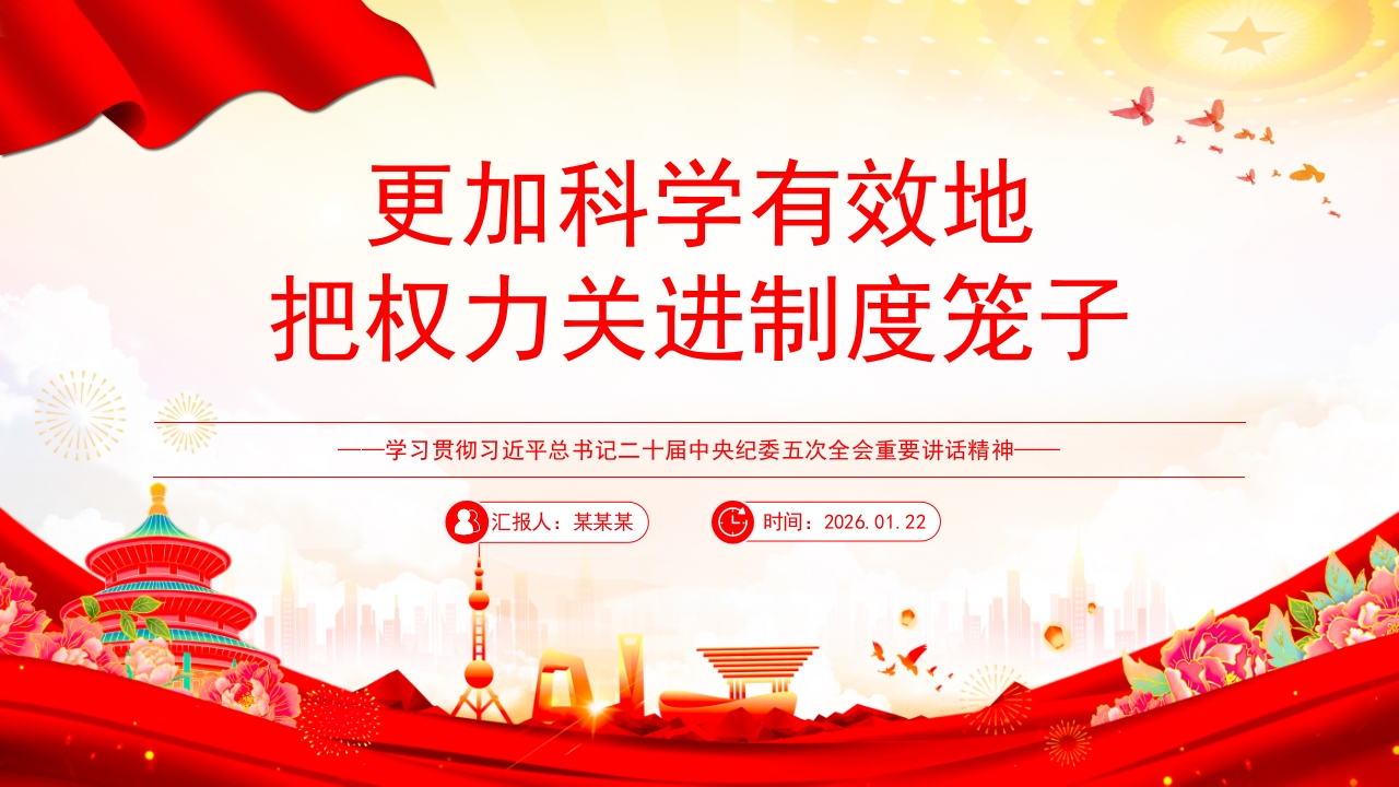 首页PPT模板党建风更加科学有效地把权力关进制度笼子PPT总书记二十届中央纪委五次***重要讲话精神课件